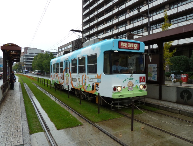 熊本城・市役所前電停にて